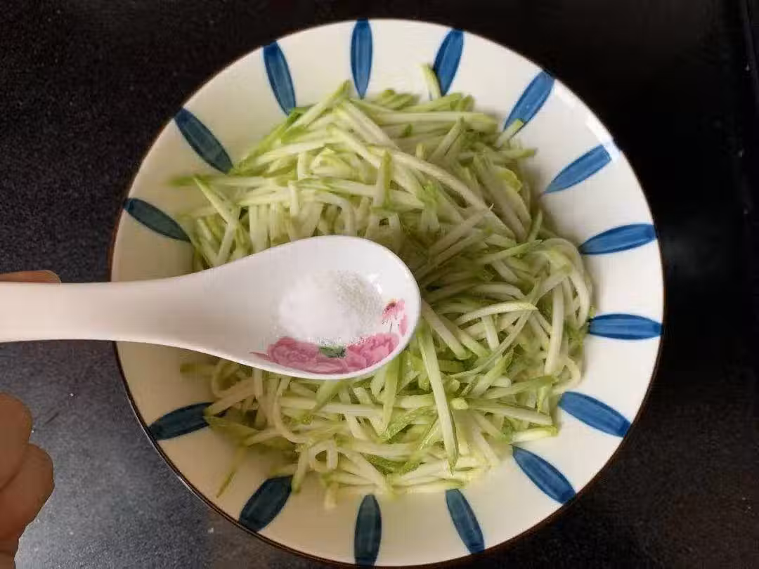 [1] 西葫蘆刨絲加少許鹽殺出水分,胡蘿蔔刨絲,雞蛋炒熟。