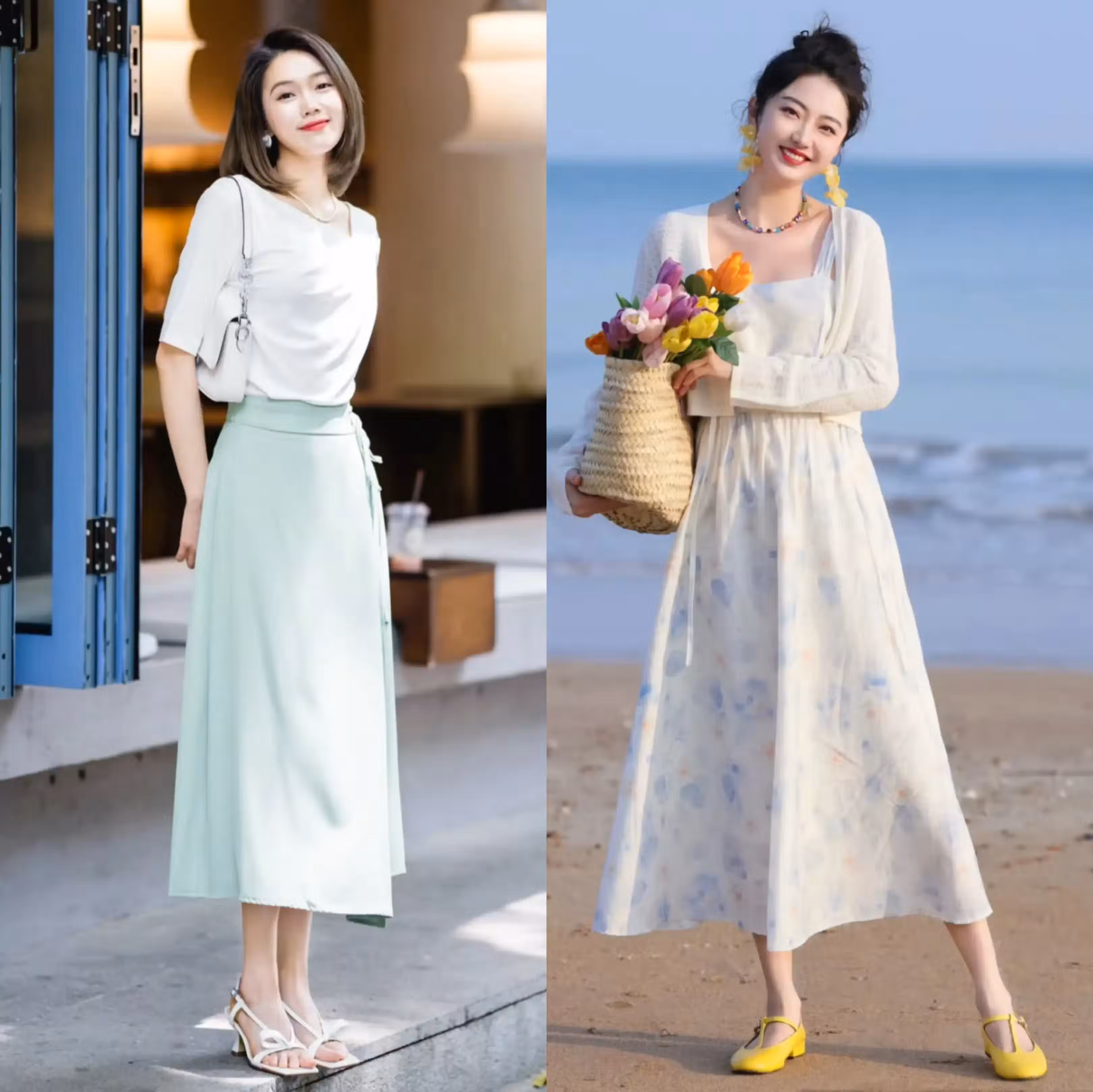 1、淺色裙子:連衣裙是夏季女性的必備單品,選擇一條淺色系連衣裙,既能展現女性的優雅氣質,又能凸顯清新感。可以選擇帶有印花或蕾絲等元素的款式,增加時尚感。
