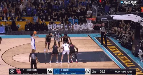除了NCAA冠軍和MOP(四強賽最佳球員),弗拉格把能拿的獎基本都拿到手。NCAA瘋三半決賽,杜克67比70不敵休斯頓大學,無緣決賽,弗拉格空砍27分7板4助。最後20秒,弗拉格先被吹搶籃板犯規,接下來又錯失關鍵跳投。