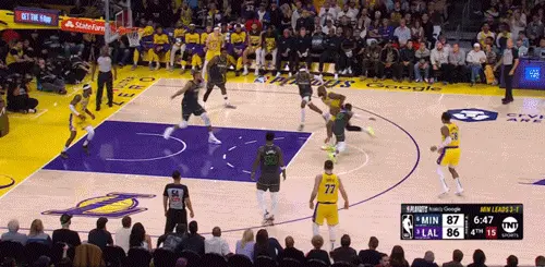 下半場裁判哨子有點緊,第四節剛開始,芬尼-史密斯和麥丹都是5犯。戈貝爾制霸籃下,狂搶前場籃板,湖人內線被打爆。最後3分半鐘,森林狼領先5分。華子三分10中0了,今天命中率辣眼睛。蘭德爾和戈貝爾扛起森林狼進攻!
