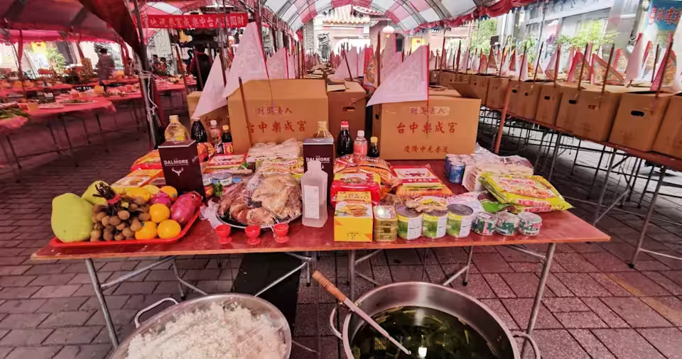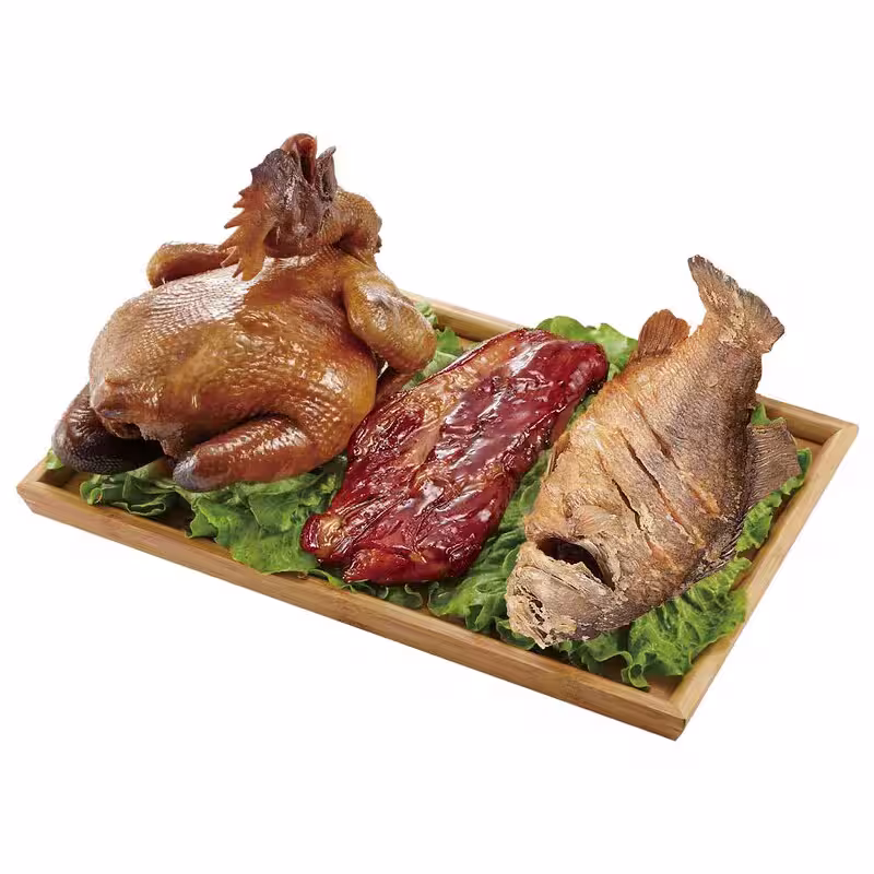 三牲(豬、雞、魚)不可去頭去尾,要整隻雞、整條魚,豬:諸事順利,雞與台語「家」同音,起家,象徵家庭團圓興旺;魚:年年有餘。
