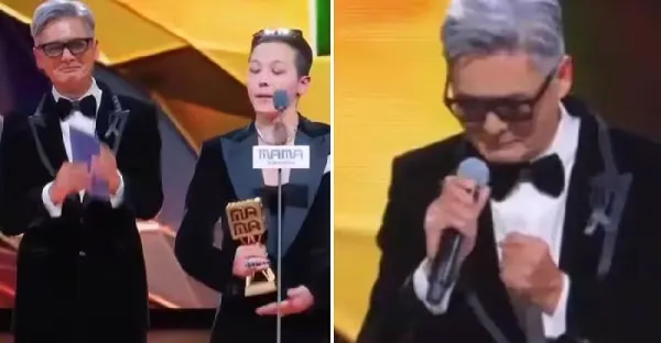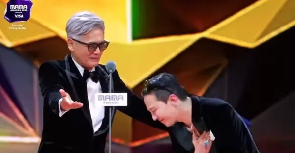 周潤發再次為權志龍頒獎,在典禮上,權志龍像個嬌羞的小媳婦兒
