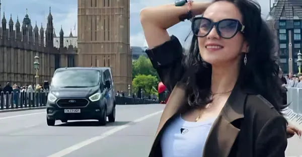 章子怡新燙了卷髮年輕18歲,穿西裝+半裙去度假,美得像換了個人