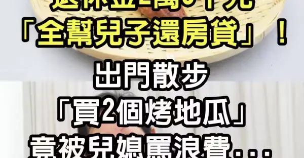 退休金2萬5千元「全幫兒子還房貸」!出門散步「買2個烤地瓜」竟被兒媳罵浪費...我做個決定兒媳慌了